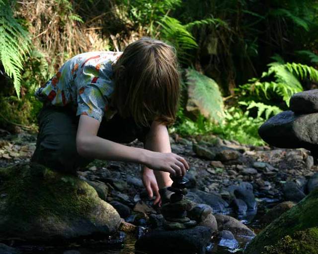 This week I have been working in a nice woodland on a bridge project and Ollie my 11 year old has been coming out with me and making sculptures in a Richard Long/Golsworthy sort of style. This sort of play is all about interacting with the environment and the benefits are very deep for adults too.