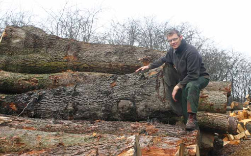 I also bought two large oak trees which we will cut up into two inch thick planks for making benches from. This one is particularly fine as it has a lot of epicormic growth, little twigs and that means that inside it will have lots of little pippy patterns in the grain.