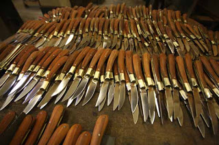 Trevor normally has a few finished knives in stock but he has been very busy on a large order of Etricks, these are an unusual but traditional design.