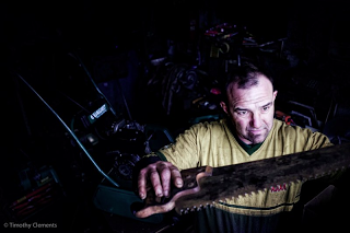 The Saw Doctor: Bill is checking the set of the teeth on a third generation steel logging saw, handed down father to son. To his customer this saw is more than just a saw. It is not just something bought on a frustrating, forgettable day from B&Q. It is a memory of a father and a grandfather. A memory of large, grease etched hands, the sound of a laugh, the tune of a whistle. A direct, tangible link to the past. And taking the saw to Bill and having a chat is another moment added to the provenance of this saw. This saw is also “green”. The teeth on a mass production saw are specially hardened so, ironically, they last longer, but once they are blunt they can not be sharpened and the saw has to be thrown away. So it can not last as long as this old saw, whilst someone is here to sharpen it. Bill was taught by his father Peter in his workshop in Earlsfield and has been a Saw Doctor there for 30 years. Nobody is set to take his place www.austinmowers.com