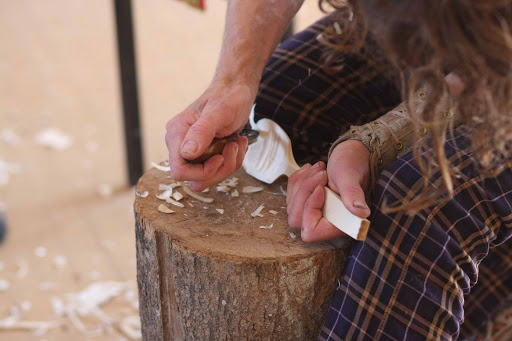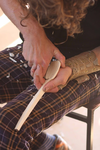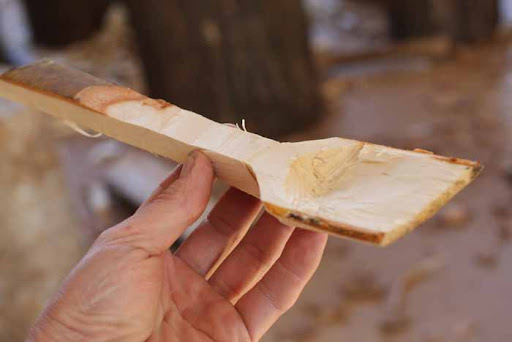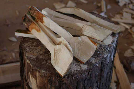 Completing more of the spoon with the axe