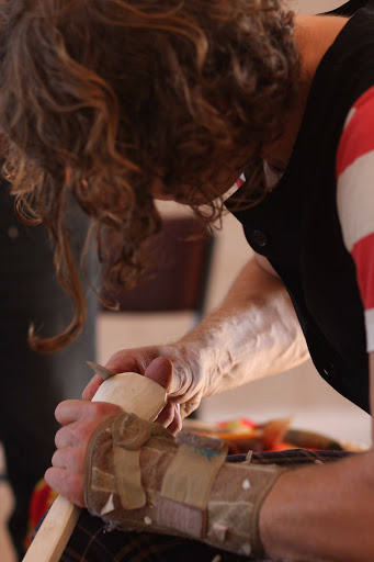 One of the things I picked up from him was the great benefit of being able to carve left handed, often it allows him to get the blank symmetrical and to see the line he is cutting to where if you were to turn the blank over to carve right handed then you can not see the line.