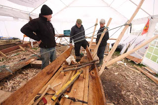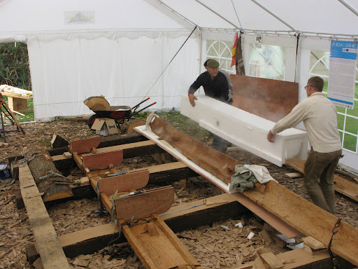 So our Dover Bronze Age boat project has got to the stage for steaming the planks. These are heavy oak timbers 20 feet long an inch and a half thick and the first ones we need to bend are also curved cross section so thus increasing their rigidity and acting like a girder.
