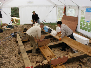 The bend transforms the timbers from straight boards into beautiful curvaceous boat timbers. This is not just about aesthetics though the boat shape with the base dipping down in the centre and up at the ends is called rocker, the degree of rocker is crucial to boat design. A flat bottomed boat is great for going in straight lines on a canal but it doesn’t like to turn and it would break its back on waves.