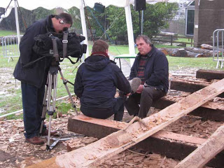 This is Richard our team leader clearly relieved at the end of the day filming steaming a timber with Time Team