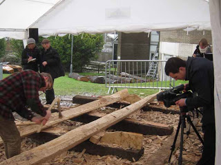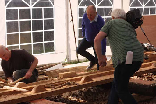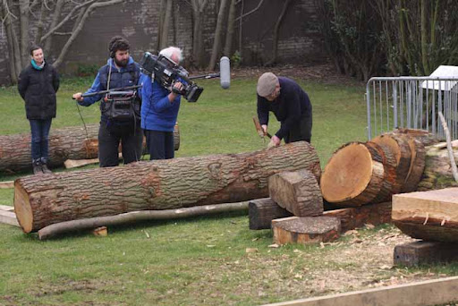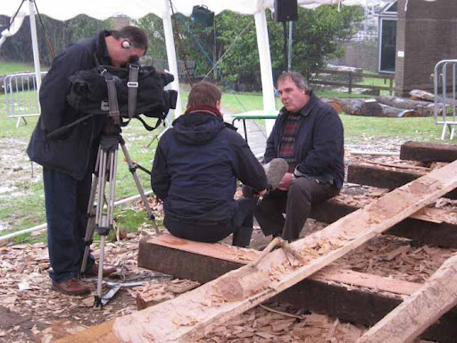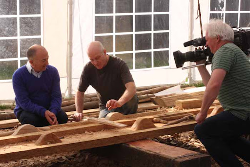 The real eye opener though was the day Tony Robinson came to film. They had to pack so much into the day and worked really hard. I am used to working with film crews where if they don,t like something you do it again and if they like it then it’s wrapped up and we move on. With Time Team it was the other way round, one of the first things we filmed was Richard and I splitting a big oak log with Tony trying to help here and there. They really liked the take so we had to do it exactly the same again 3 more times so they could film from different angles to cut it together. I had no idea where I had been standing, where I moved, what I said but it all had to be repeated. Tony was a past master at it and helped us out when we forgot, by the end of the day we had got the hang of it but it was pretty strange. Anyway here is Trevor with Tony explaining all about how the cleats work.