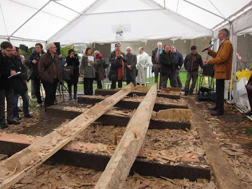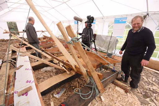 This is a different crew interviewing Kieth the archaeologist who discovered the bronze age boat, he popped out on his lunch break to check the construction site for the A20 and an underpass and 6m down in the peat there was what he instantly recognised as a boat timber, the mechanical excavator had already taken one huge bite out of it so he was just in time. Construction stopped for the day and they ended up with 7 days to excavate and recover it.